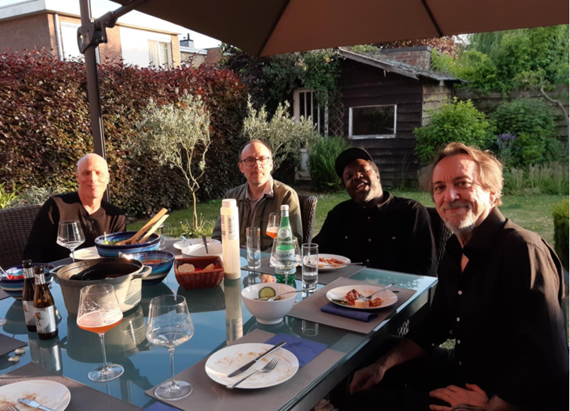 Mick Rossi, Frank Tafuri, Jos Demol, Tom Varner at Frank's place Brooklyn, NY © Marijke Verkeyn