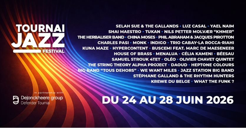 Voor zijn 14e editie, van woensdag 24 tot zondag 28 juni 2026, keert het Doornik Jazz Festival terug met een programma dat breder, gedurfder en feestelijker is dan ooit. Trouw aan zijn DNA, blijft het festival de dialoog aangaan tussen opkomende jazz, grote stemmen, unieke creaties, Belgisch talent en internationale iconen, terwijl dit jaar de gezellige en familiale sfeer nog verder wordt versterkt.
