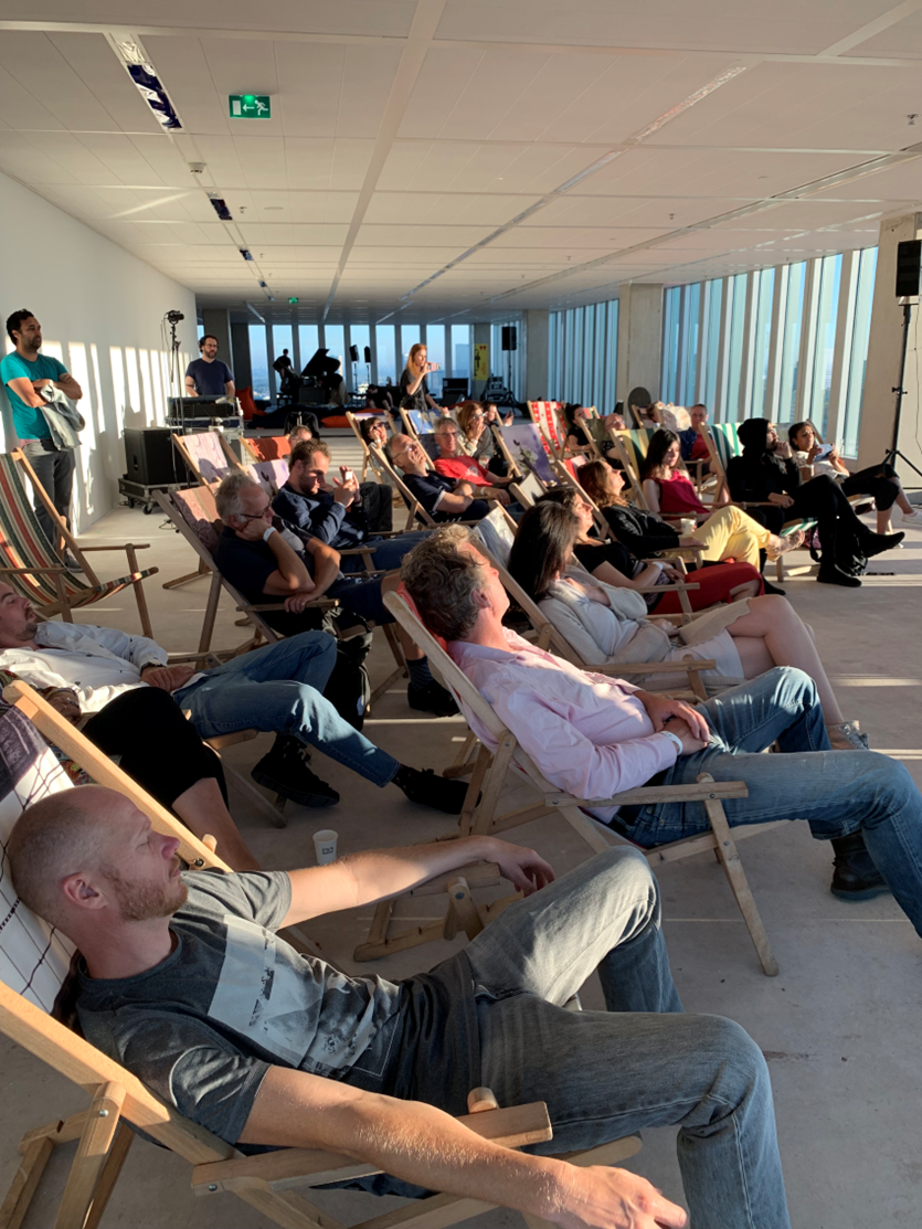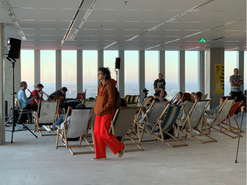 It was an exceptional occasion to experience the urban ambiance in a different way by watching it from inside out at such an exquisite location. Musicians and audience were privileged inhabitants of the vacant 31th floor with its surround view for that night.