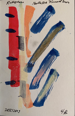 The album has five pieces between 5 minutes and the 16 minutes of the opening piece “En Route”. It is maybe a bit inadequate to speak of flow to give an indication of this music. The sounds or tones set, feel for me as something that ‘just happens’ - without a clearly perceptible origin or direction. They gain direction gradually from an inner potential that emerges and slowly unfolds, find each other and ways itself, seemingly develop from within itself - what sometimes also is indicated as ‘the music is playing itself’ or ‘the music’s shape is coming into being by an invisible hand.' These circumlocutions have to do with the intentionality-strength, the conscious control and forward pushing energy. The music doesn’t feel like the common way of developing together a thematic.