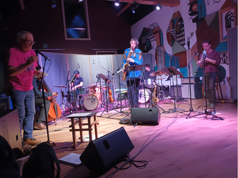 Het werd een boeiende avond waarbij kamermuziek en vrije improvisatie samensmolten. Nu eens ingetogen om er dan plots uitbundig tegenaan te gaan. Het spanningsveld tussen enerzijds de stem van de 79-jarige Beñat Achiary en de diverse instrumenten zorgden voor een levendige muzikale avond, en dit op een toplocatie.
