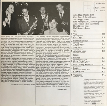 * Jutta Hipp Quintet, "Cool Dogs & Two Oranges", opnamen uit 1954 met Emil Mangelsdorff, Joki Freund, Hans Kresse, Karl Sanner (L + R CDLR 710429) (Solid Records Japan 47703)