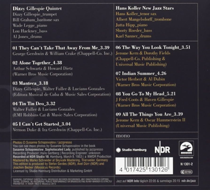 * “Dizzy Gillespie & Hans Koller – Live 9 March 1953” in de NDR Studio, Hamburg. Het zijn opnamen met Hans Koller, Jutta Hipp en Albert Mangelsdorff. En apart het Dizzy Gillespie Quintet. Jutta ging niet op tournee met Gillespie, ze waren alleen dezelfde dag uitgenodigd in de studio.