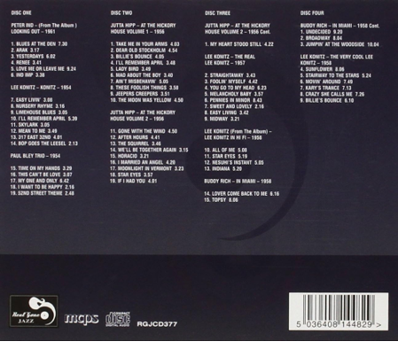 * Real Gone Jazz 377 is een 4-cd “Peter Ind, 8 Classic Albums” met opnamen van Lee Konitz, Paul Bley, Buddy Rich, plus de Hickory House-opnamen van Jutta Hipp, Peter Ind en Ed Thigpen.
