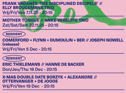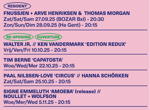 Dit openingsweekend is de start van een programma van 9 concerten en 3 vrije improvisatieavonden voor het goede doel dit najaar.