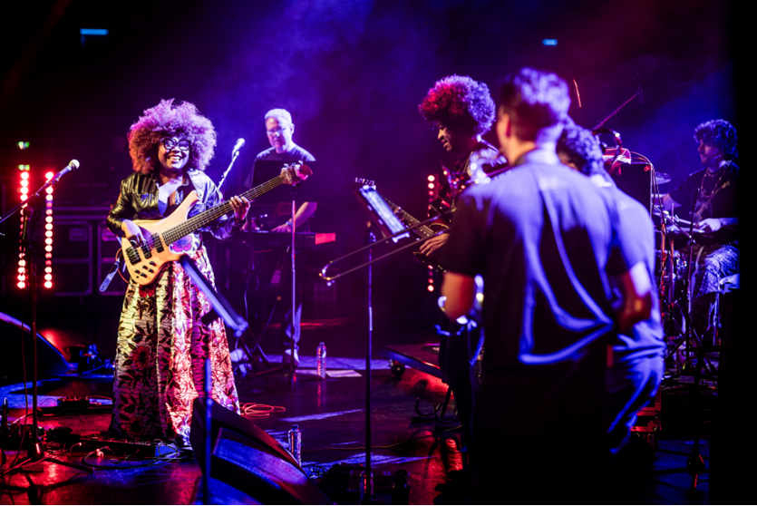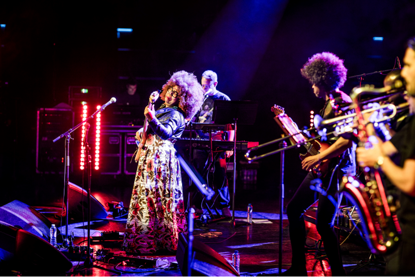Manou Gallo zien en horen spelen op bas en percussie is een feest. Op de meest natuurlijke wijze slapt zij de vettigste grooves op haar 5-string, terwijl ze dansend haar eigen nummers staat te zingen.