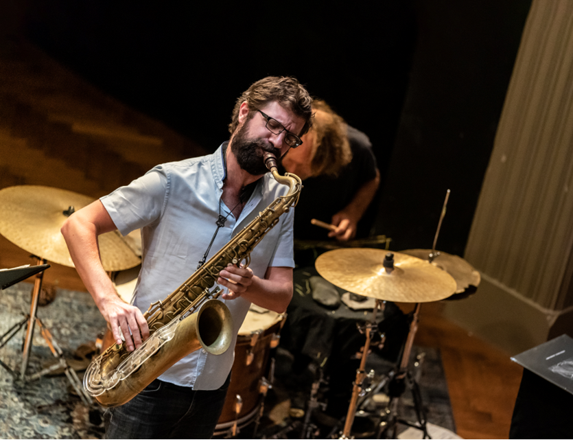 Ik ken Cristina Zavalloni via het werk van Fabrizio Cassol en de opera’s van Andriessen. Ze is echt een complete muzikante, die de grens bewandelt tussen jazz, geïmproviseerde muziek en moderne klassiek. Vanwege haar bereik heb ik bewust momenten gekozen waar ze zingt op het randje van haar stem – ik wil niet alleen schoonheid, maar ook een edge, iets dat leeft. Daar zijn we in het stuk mee gaan spelen. Toevallig had Cristina al een connectie met Lahiri, ze kennen elkaar uit Rome. We kozen samen de teksten, dat was een heel fijn, verrijkend proces. Ik laat haar stem net als mijn sax door tekst en muziek weven.