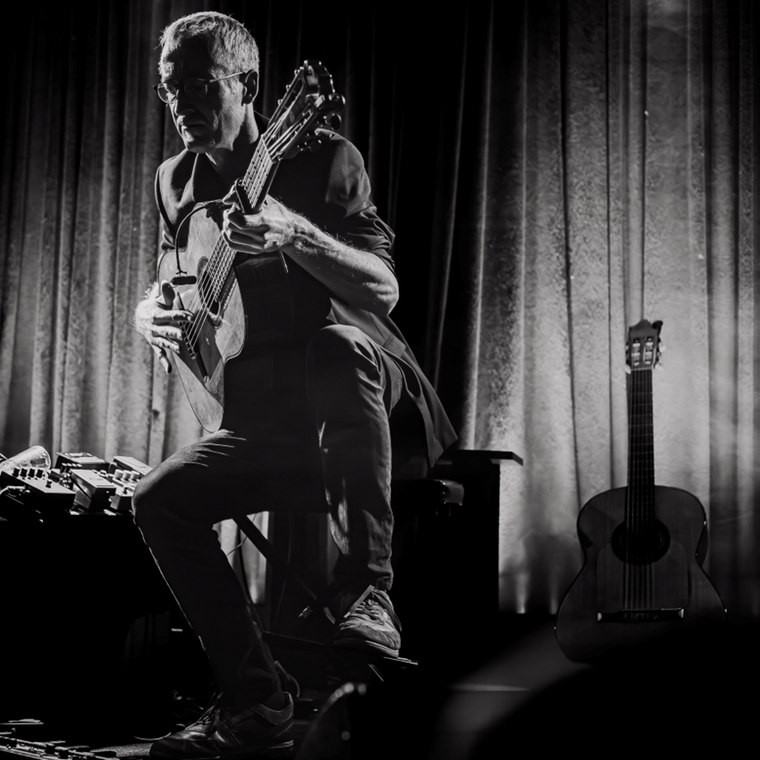 Steve Tibbetts : (hij pakt zijn twaalfsnarige gitaar en legt het uit terwijl hij speelt – red.) Ik versterk de opnames gewoon. Deze loops dateren uit 1979. Elke snaar produceert een andere reeks samples… Uiteindelijk is het alsof ik over een instant orkest beschik. En als ik even geen ideeën heb, kan mijn gitaar het overnemen. Deze gitaar is een oude vriend. Het is geen geweldige gitaar, maar ik ken ze door en door. En zoals Quentin zegt, er is een innerlijke resonantie. Kijk eens, ik heb me altijd afgevraagd hoe een twaalfsnarige nylon gitaar zou klinken… Wauw!