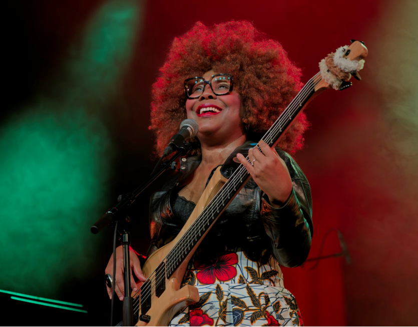 Met het Manou Gallo Orchestra kwamen we dan weer pal in Afrika terecht. De impressionante Ivoriaanse slapte en plopte op haar 5-string bass percussieve gedreven Afro-grooves.
