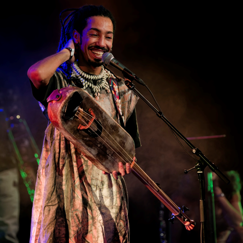 We bleven nog een beetje in West-Afrikaanse sferen met Mehdi Nassouli. De Gnawa muziek die hij bracht is een historische mix van religieuze Arabische muziek en ritmes van geïmporteerde West-Afrikaanse slaven. Nassouli begeleidt zich voor zijn bezwerende zang op de guembri, een 3-snarig traditioneel basinstrument.