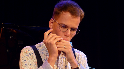 Voor het huppelende “Drowsy” (ook van D’Hooge) verscheen de jonge chromatische mondharmonicaspeler Rutger Mathys op het podium. Met de ogen dicht waanden we ons op een concert van Toots, en dan toch weer niet, want Mathys heeft wel degelijk zijn eigen stijl.
