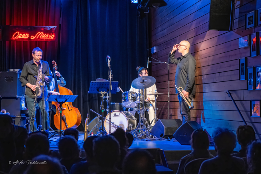 Het optreden van Henri Texier in de Open Music Jazz Club Comines is een evenement dat je absoluut niet mag missen. Voor zijn tweede bezoek hier werd hij vergezeld door zijn zoon Sébastien Texier (op altsaxofoon, klarinet en altklarinet), de uitstekende drummer Gautier Garrigue en, als gast, onze Belgische trompettist Carlo Nardozza.