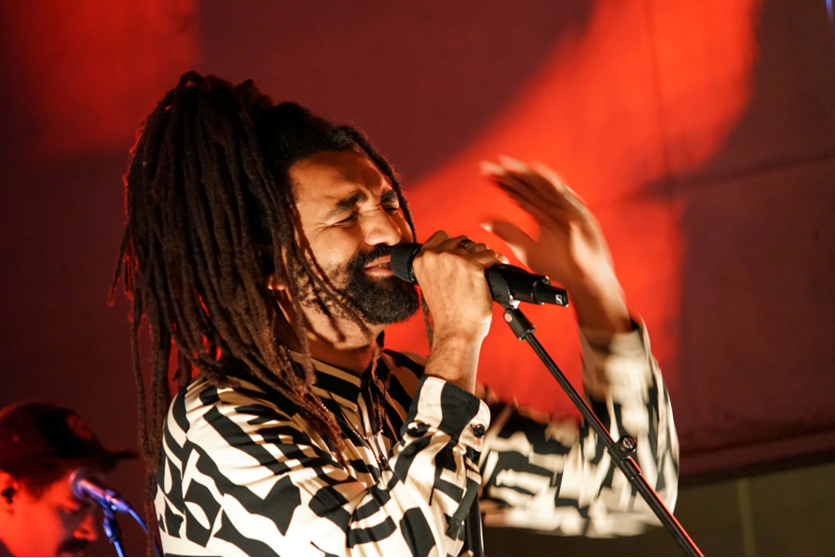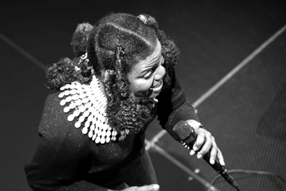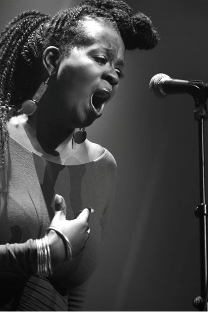 Vooraan op het podium staat de charismatische zangeres Ann O’Aro. Ze groeide op in La Réunion en in haar muziek vermengt ze de stuwende energie van maloya - de plaatselijke muziekstijl - met snedige en activistische teksten in het Creools en het Frans.