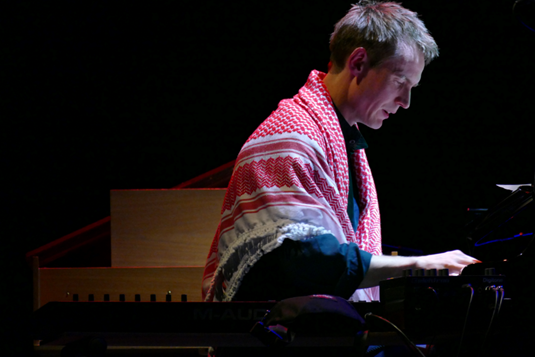 The subsequent trio Handover was an odd one out at this place and in this combination. Musically it was a diluted, extraction of Egyptian music elements prepared in a populistic quasi-ambient manner. Musically uninteresting and not long bearable.