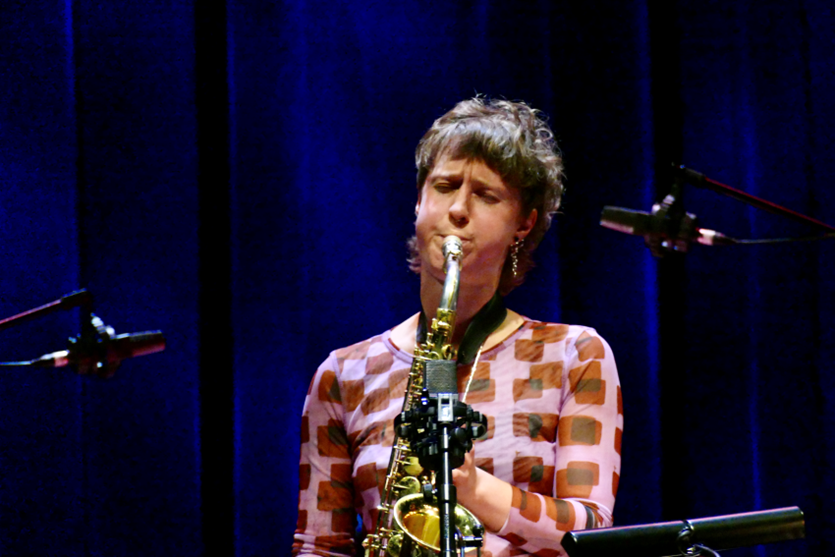 Signe Emmeluth’s all-female ensemble “Banshee” caused quite a stir with its 2024 album in Norway. Expectations were correspondingly high. The music was described as “state of the art of contemporary …, which combines the harmonic structures of contemporary music, the thematic forms of avant-garde jazz, the insistent rhythms and trance tendencies of techno music, as well as the under-standing of form of improvisational music. It sounds great and greedy. An ensemble of seven musicians throws off energetic firework from which … listeners can reap the auditory fruits.” (Motvind Records) While Emmeluth is known as an extraordinary vital and hyper energetic performer these expectations could not be met in Berlin by the Banshee troupe. The concert seemed rather forced, could not really capture and captivate unfortunately.
