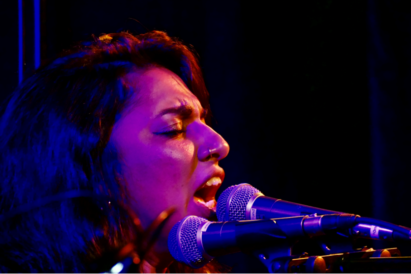 And then, as a kind of rearguard, another concert was offered in the so-called ticket hall of the Festspielhaus, overlapping with The Young Mothers at Quasimodo: an appearance of vivid and outspoken vocalist Amirtha Kidambi from New York with her group comprising Matt Nelson and Alfredo Colón on sax, Lester St Louis on double bass and Jason Nazary on drums. Expectations were not disappointed: Kidambi is a great vocalist and driven agitprop artist with a strong presence talking urgent politics, social injustice and war crimes - permanent realities and plagues of mankind. She jumped into it immediately. She didn’t mince her words, and in joyful, encouraging interaction with her songs aroused an atmosphere and a mood of heightened attention.