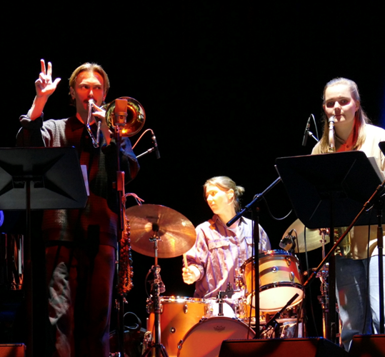 Except the Friday every night had a clear highlight and personal favourite for me. The strongest cumulative evening at the Festspielhaus was the Saturday with Mary Halvorson’s Amaryllis, The London Jazz Composers Orchestra (LJCO) featuring the pianists Marilyn Crispell and Angelica Sanchez with in total 28 musicians on stage playing (6+7+15).