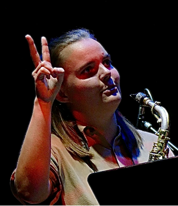 15-piece multi-spread/multinational Fire! Orchestra led by Swedish Austrian reedist/flautist Mats Gustafsson (sometimes also co-led by Mette Rasmussen it seemed) came up with a complete new program entitled “Words”. It alternated between slowly extending whisper-soft and quiet passages, sudden loud and steely rock attacks and different kinds of vocals from spoken word to advanced extended vocalisation. Gustafsson worked/played with these elements in different ways through the concert. It was a well-intentioned attempt, but not quite a breakthrough to a spoken-word-rock program of a convincing new own signature.