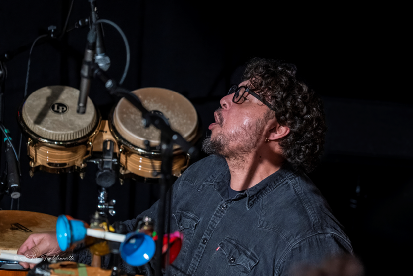 Invaller van het laatste moment Adriano Tenorio, was gewoonweg schitterend op percussie. Subtiliteit, nuance, muzikaliteit en onbeperkte ritmische variatie.... hij had het allemaal in zijn Braziliaanse handen! Voor het bisnummer ‘All Blues’ van Miles Davis, klapte de pianist Belhomme even in zijn handen het ritme voor aan de onvoorbereide Tenorio en wat hij daarvan percussief realiseerde was onwezenlijk mooi!