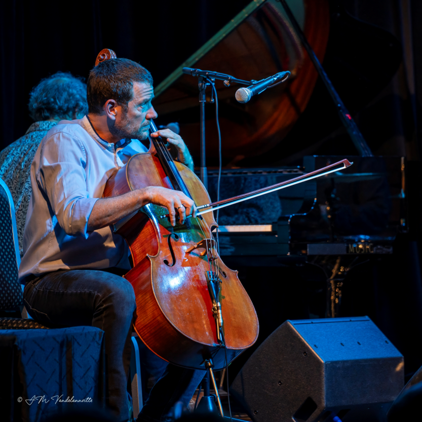 Dit artistiek credo van Matthieu Saglio zinderde virtuoos doorheen het hele concert die magische avond. Hij opende de eerste set met een prachtige solo waarmee hij bewees zich te hebben geprofileerd als een van de meest prestigieuze en originele Europese cellisten. Matthieu beschikt over een verbazingwekkende techniek. Hij puurde echt alle akoestische mogelijkheden uit zijn instrument maar steeds stilistisch in functie van de composities die het kwartet bracht.
