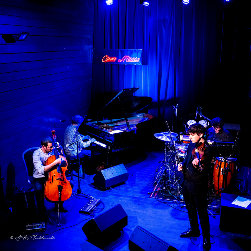 Vrijdag was het kwartet van de in Valencia gevestigde Franse cellist Matthieu Saglio te gast in de gezellige, sfeervolle Open Music Jazz Club in Comines. En zoals de cellist het vermelde: ze voelden er zich thuis. Matthieu Saglio werd vergezeld door pianist Christian Belhomme, violist Léo Ullmann en percussionist Adriano Tenorio, die inviel voor Zé Luis Nascimento, en dit zonder al samen gerepeteerd te hebben.