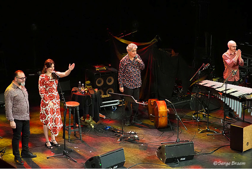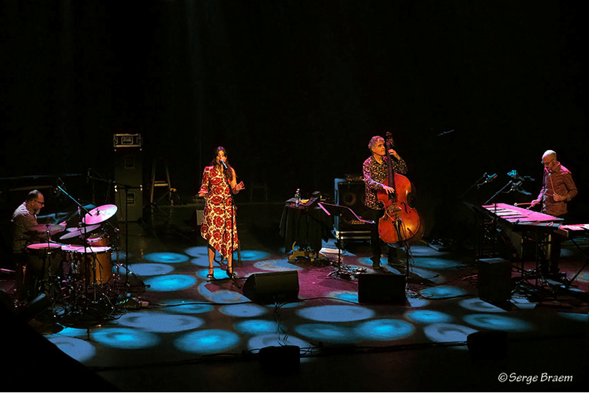 Rond dit duo komt het kwartet tot leven: Stéphan Caracci kleurt de reis met zijn vibrafoon en basmarimba, terwijl Jean-Luc Di Fraya een subtiel ritmisch weefsel creëert tussen percussie en drums. Samen bieden ze een ideaal kader voor zowel stem als contrabas.